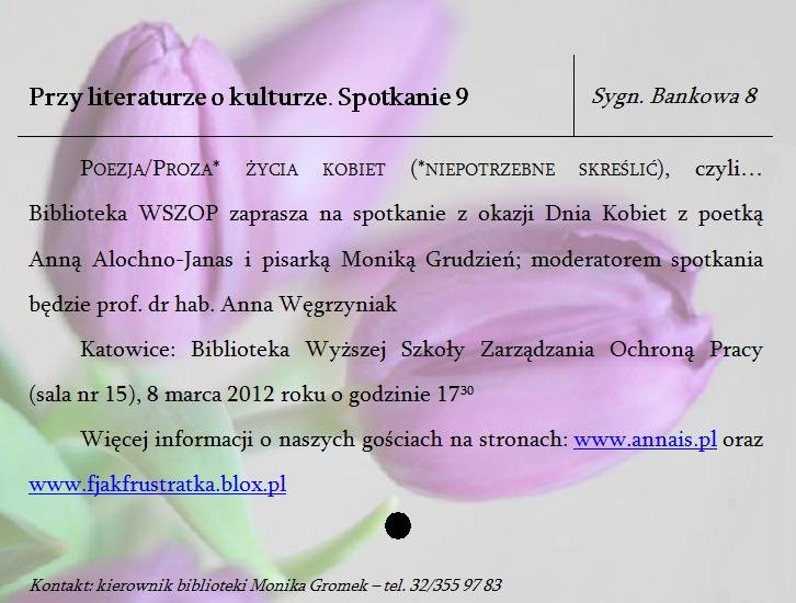 Po pierwsze: Anna Alochno-Janas znana również jako Annais - poetka, pisarka, tłumaczka i absolwentka Kulturoznawstwa WSZOP.